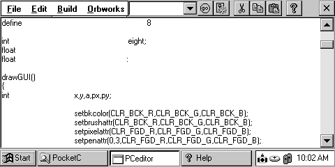 разработки приложений на H/PC, использующая диалект языка "Си". Инструкция по установке: A) Распакуйте файлы в пустую временную папку на вашем компьютере. Дистрибутивный файл - EXE-файл для PC в папке CE1 или CE2. B) Установите программу, пользуясь H/PC Explorer'ом. C) Установите Microsoft Foundation Classes для WindowsCE (SH3, MIPS). Напоминаю, что после распаковки библиотеки mfcwce.dll на карманном компьютере с процессором SH3(Casio, HP, Compaq, ...) или MIPS (Philips Velo, NEC, ...) ее надо скопировать в директорию \Windows на H/PC. Проект компании Orbworks больше не поддерживается, статус уточняется. ![]() |