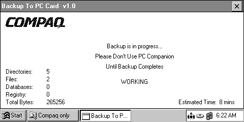 данных из HPC на PCMCIA-CF карточку. Compaq Restore копирует на HPC все