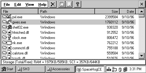 объемом памяти. Показывает файлы в RAM, ROM и в карте памяти PCMCIA. К