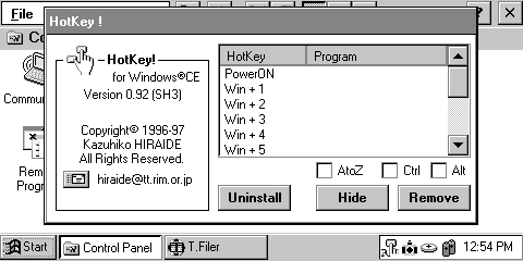 в панель управления Windows CE 1.0 и позволяет удалять до четырёх