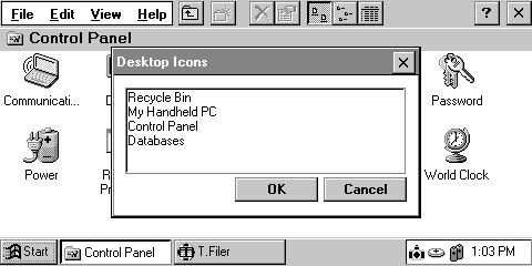 иконок рабочего стола: "Recycle Bin", "My Handheld PC", "Control Panel"